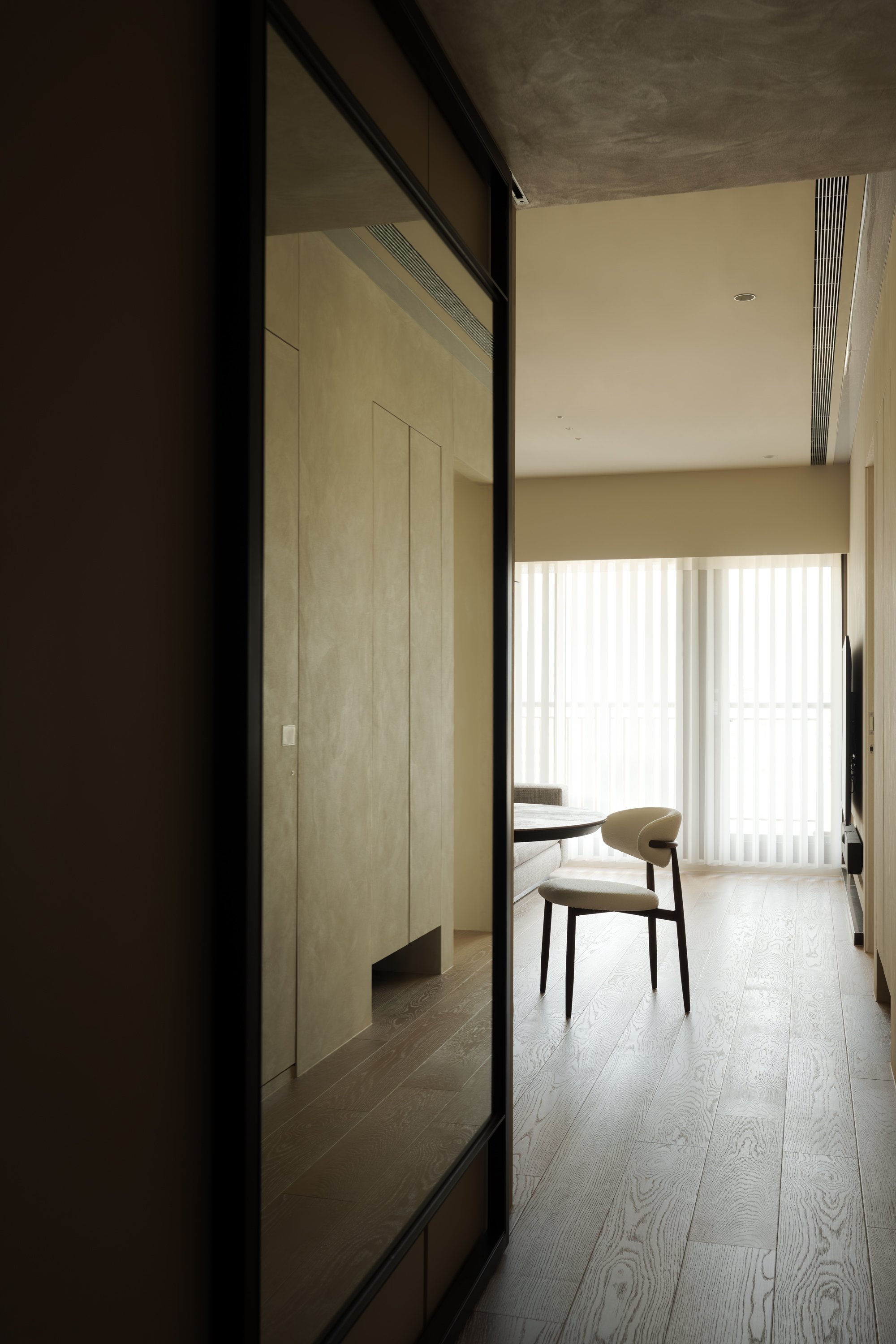 空間中線條簡約流暢,⾊調柔和⽽和諧,與陽光穿透窗紗的溫暖交織。不僅僅是⼀個居住的場域,更是⼀種⽣活態度的體現:回歸簡單,擁抱真實,在純淨的環境中感受⽣活的細節與美好。