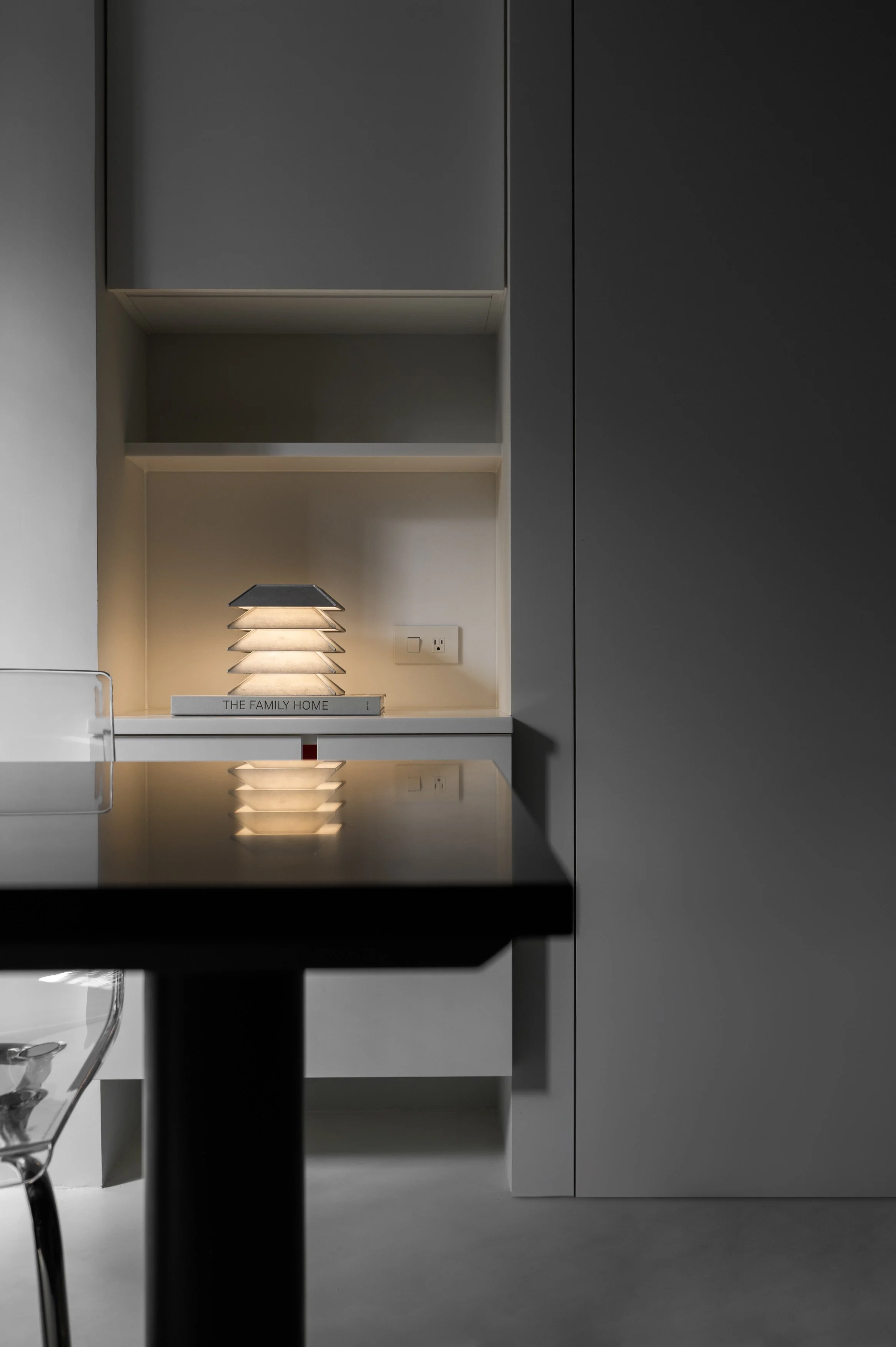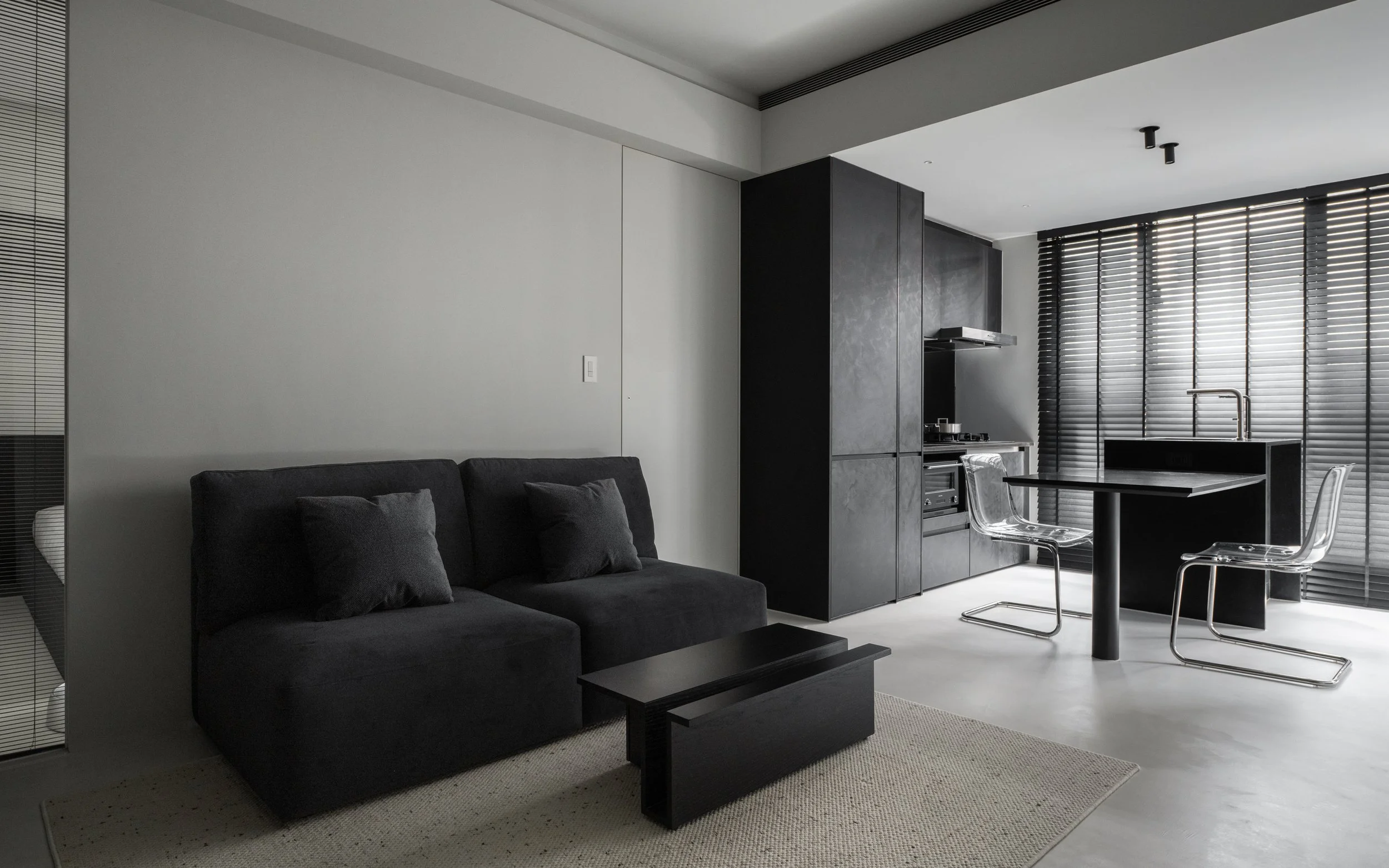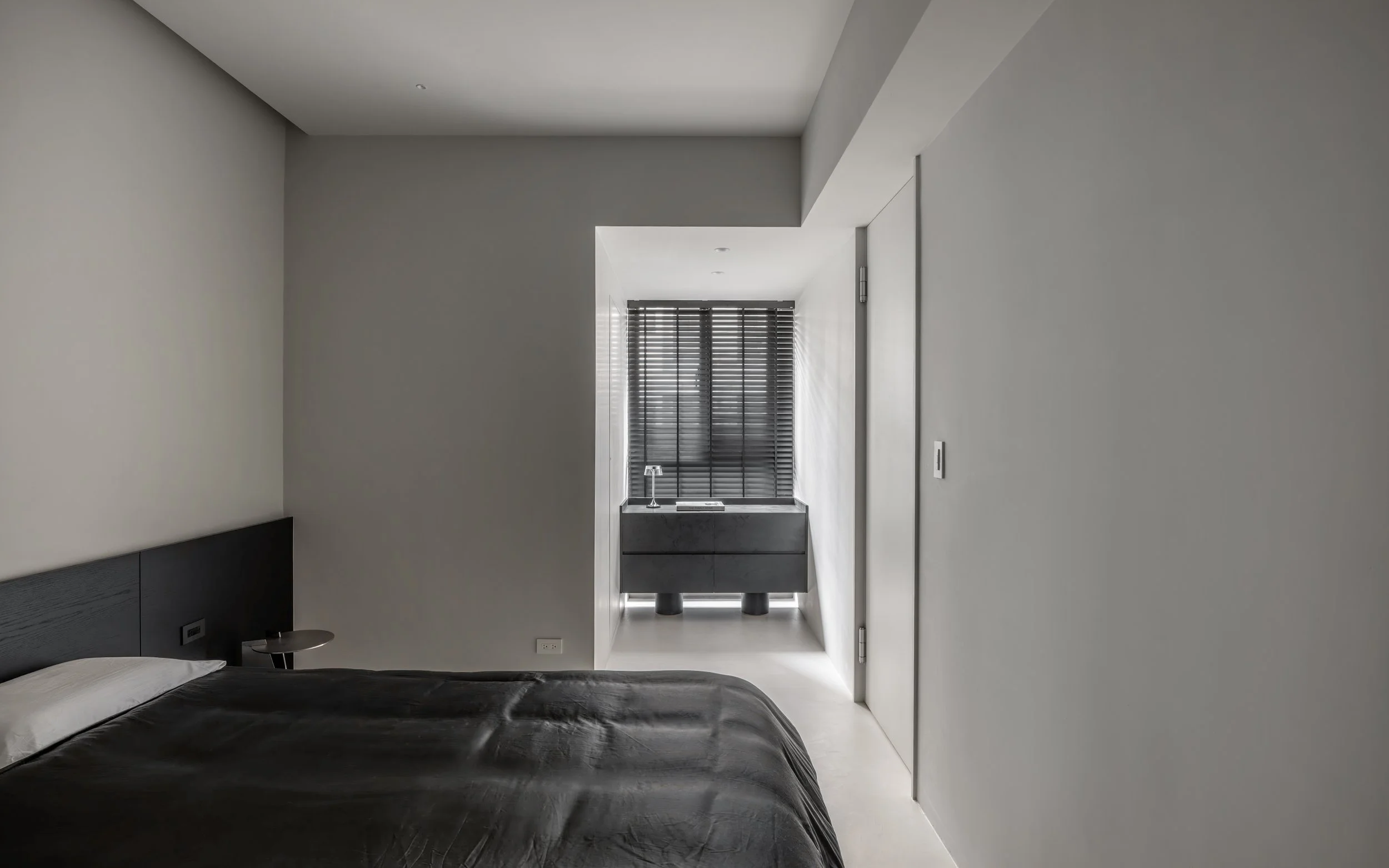 在僅有黑、白之空間,比例與光成為最關鍵的構成要素,極限的色域中,黑與白被轉化為控制與秩序的語言,不同材質的黑在光線中層層堆疊、彼此呼應,形塑出具有延伸性的立面張力。