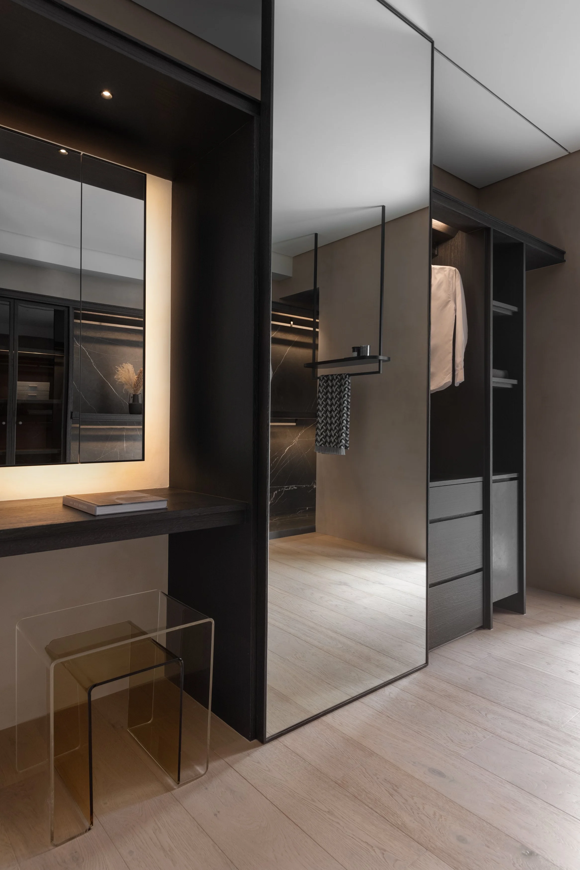 從客廳步入廚房作為空間中心的延伸,我們揉合了不同材質層次的收納櫃體創造出空隙,宛若藝術迴廊佇立其中,讓日常品味能被收藏,生活表情也得以存放。