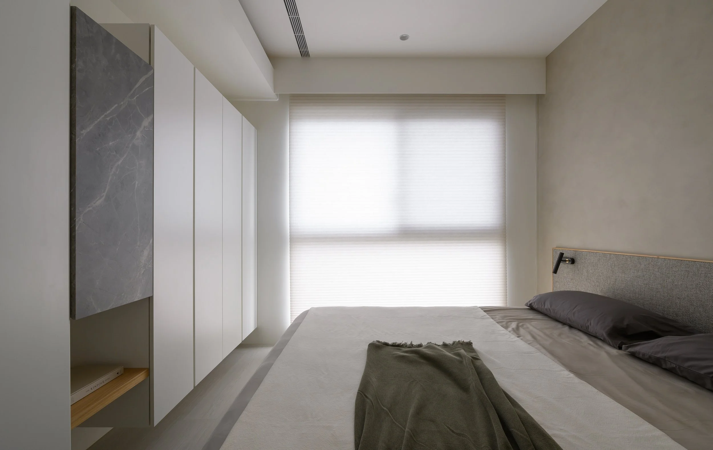 我們將光線最大化的利用,並在空間中選用低彩度且中性的米灰色階作為主要的色彩基調。在配置的選擇上,我們則遵循了「少即是多」的原則,讓室內簡化為最基本的元素勾勒出整體簡潔之氛圍。